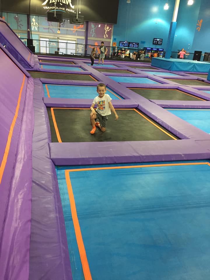 You need to bring trampoline socks with grips on the bottom or you will be paying $3 a pair. There are lockers if you don’t want to leave your stuff unattended while you jump, but I just left my purse in the car. It is much more difficult to sneak food into this place if parents also want to jump, so bring some cash with you to buy from the concession stand.