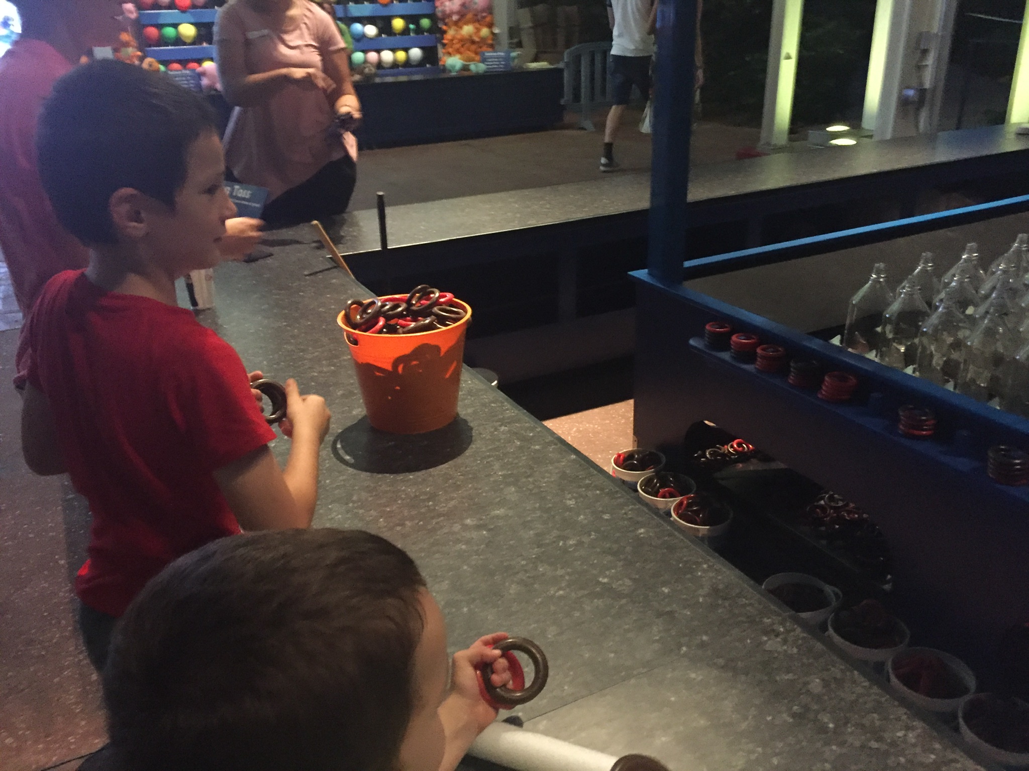 This 8:30 p.m. show was a hyped version of the day show with music and dancing while you wait for the show to start. The whales do the same basic moves splashing the audience and various other tricks. It’s unfortunate that rules do not allow trainers to enter the water because the shows seems repetitive. The kids enjoyed the music portions and danced with their light sticks.